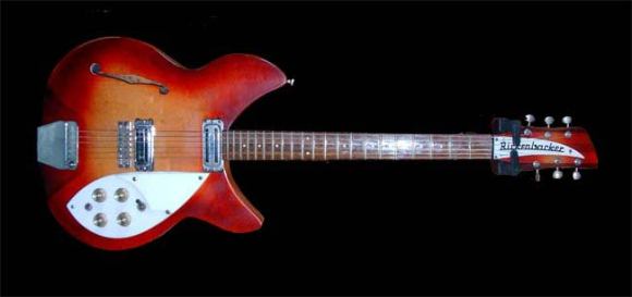This Rickenbacker was the first decent guitar I bought. Purchased in 1969, second hand and painted black! I removed the black paint to find the original finish still there, although slightly sanded to remove the shine before painting. The only original part missing is the whammy bar that I removed and lost years ago.